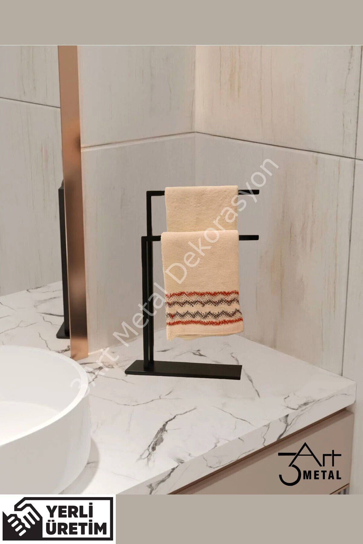 - Modern tasarımıyla banyonuza şıklık katan havlu askısı, günlük kullanımınızda pratiklik sağlar.; - Dayanıklı metal malzemeden üretilmiş olup uzun ömürlü bir kullanım sunar.; - Kolay montaj imkanı sayesinde hızlıca kullanıma hazır hale gelir; ekstra bir profesyonel yardıma ihtiyaç duymazsınız.; - Ayakları sayesinde zeminde sabit durur ve kayma riskini azaltır.; - Tuvalet kağıdı rulosunu da rahatça saklayabileceğiniz bölmesi ile fonksiyonellik artırılmıştır.; - Üretiminde yerli kaynakların kullanılmasıyla çevre dostu bir tercih yapmış olursunuz.; - Ölçüler Yükseklik 40cm - Genişlik 30cm - Derinlik 10cm