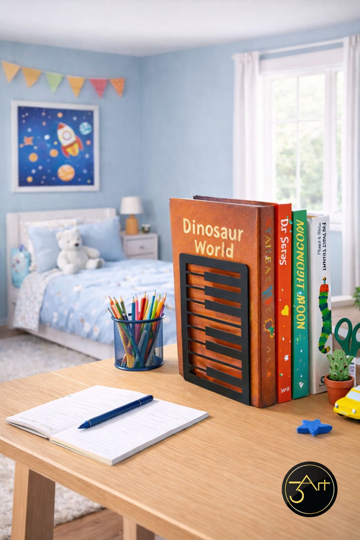 - Modern ve minimalist tasarımıyla her türlü dekorasyona kolayca uyum sağlar.; - Metal malzemesi sayesinde dayanıklı ve uzun ömürlü kullanım sunar.; - Türkiye'de üretilmiştir, yerel işçiliği destekler ve kaliteli malzemelerle üretilmiştir.; - Ofis ve ev ortamları için ideal, şık bir kitap desteği olarak kullanabilirsiniz.; - Kitaplarınızı düzenli tutarken aynı zamanda estetik bir görünüm kazandırır.;