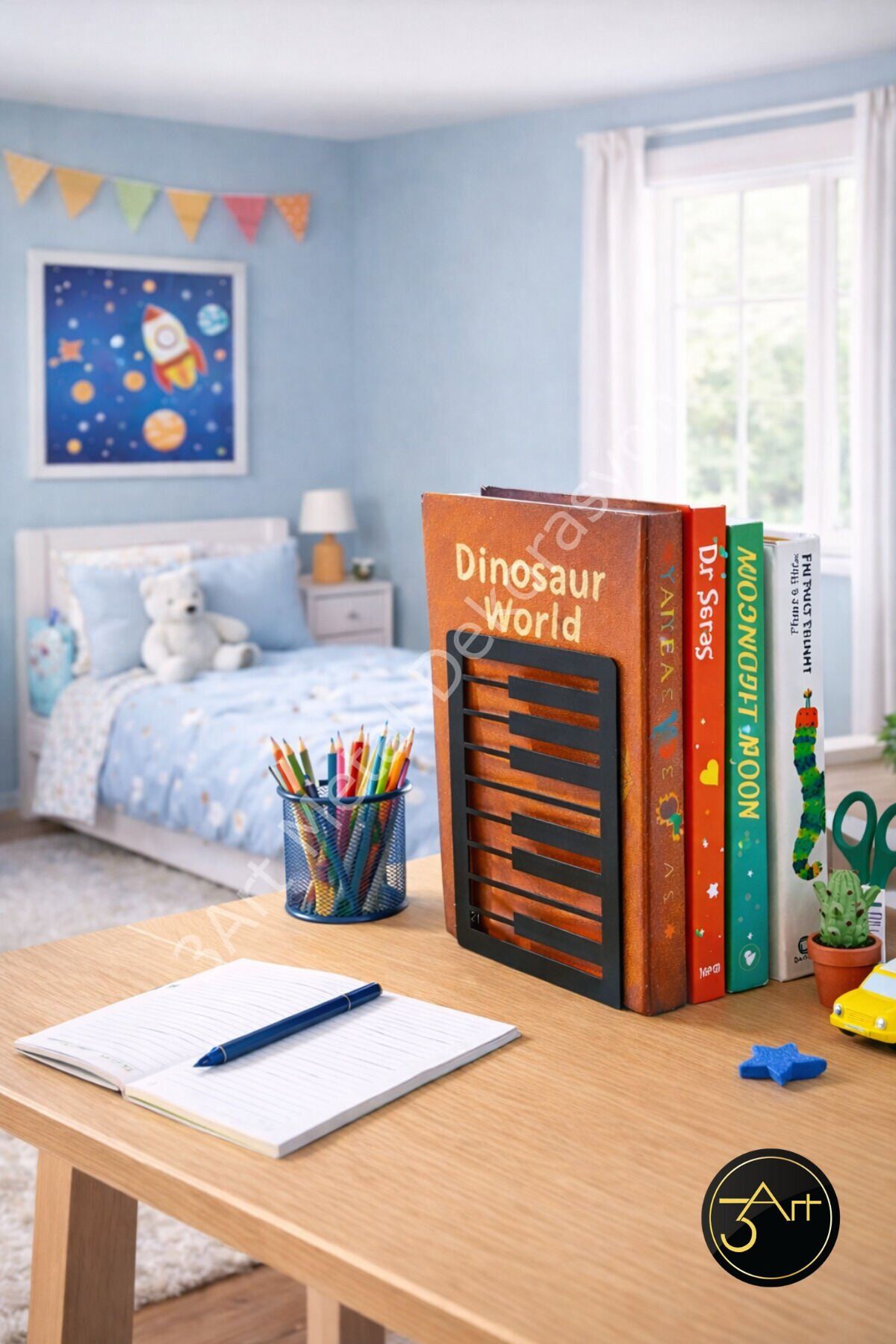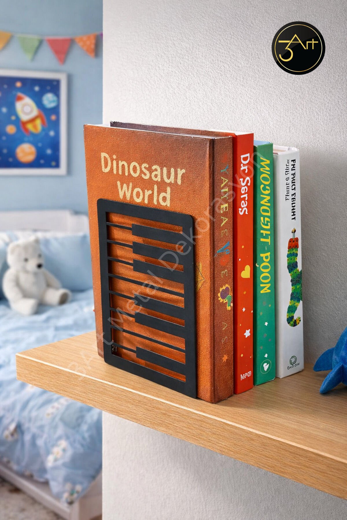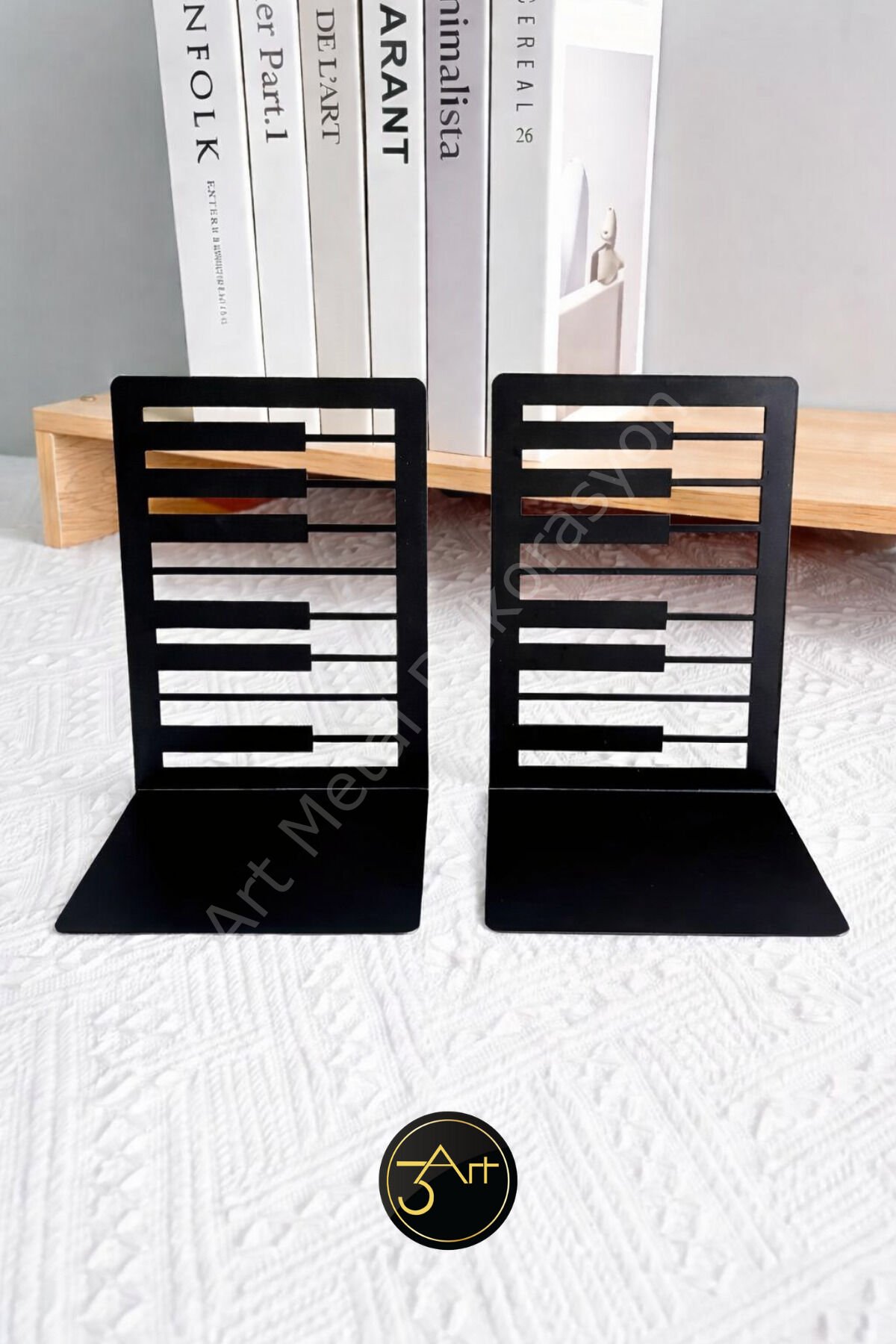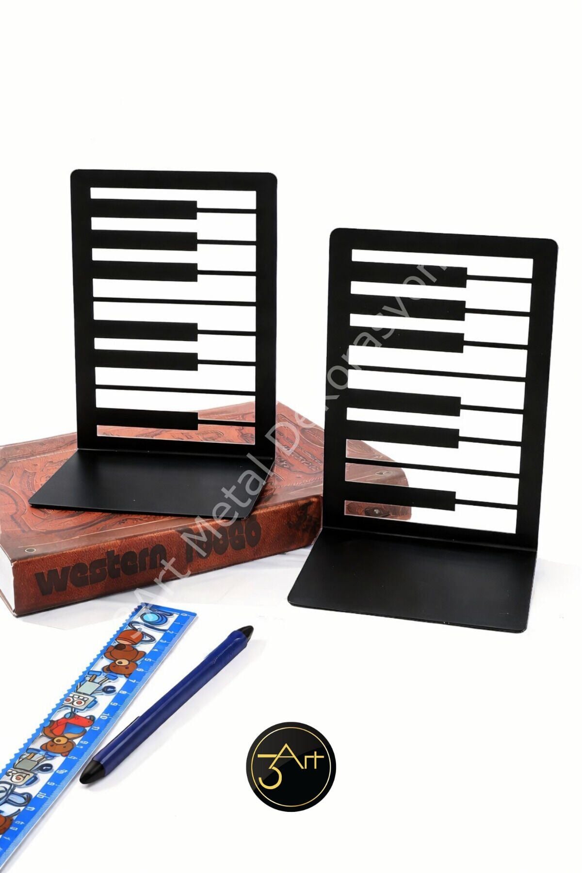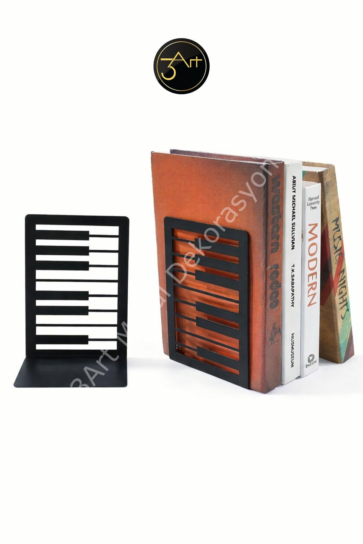 - Modern ve minimalist tasarımıyla her türlü dekorasyona kolayca uyum sağlar.; - Metal malzemesi sayesinde dayanıklı ve uzun ömürlü kullanım sunar.; - Türkiye'de üretilmiştir, yerel işçiliği destekler ve kaliteli malzemelerle üretilmiştir.; - Ofis ve ev ortamları için ideal, şık bir kitap desteği olarak kullanabilirsiniz.; - Kitaplarınızı düzenli tutarken aynı zamanda estetik bir görünüm kazandırır.;
