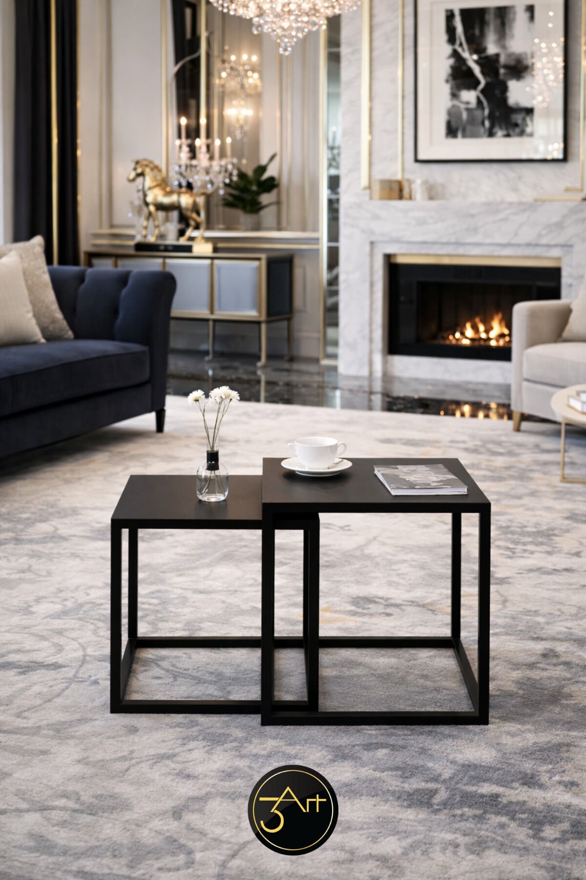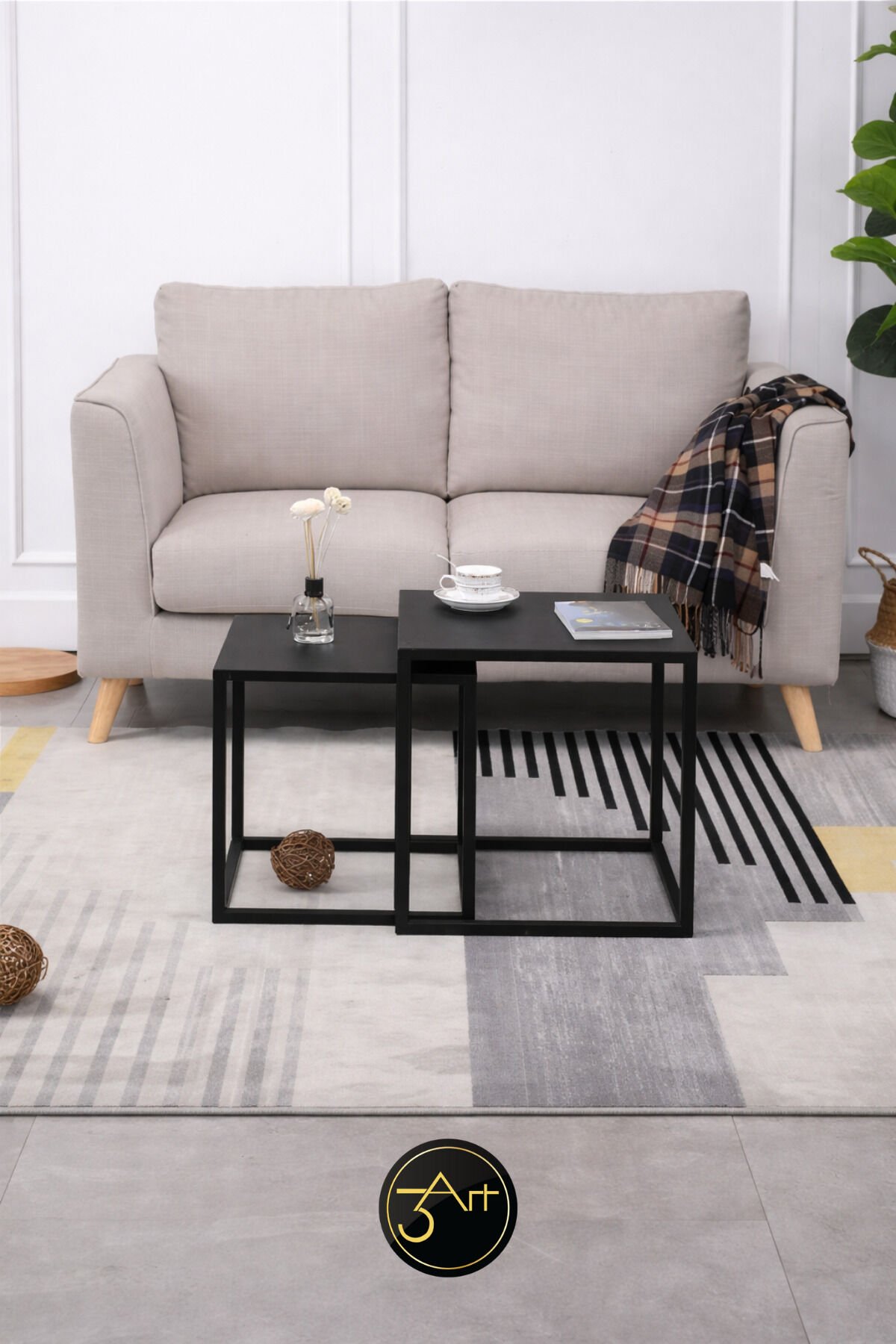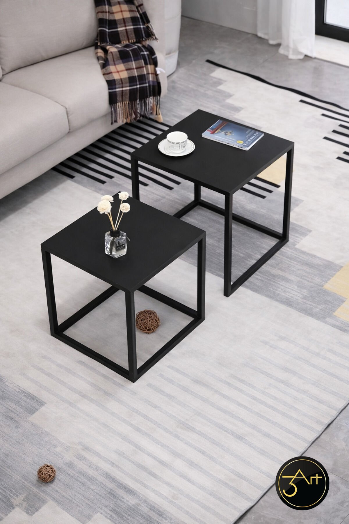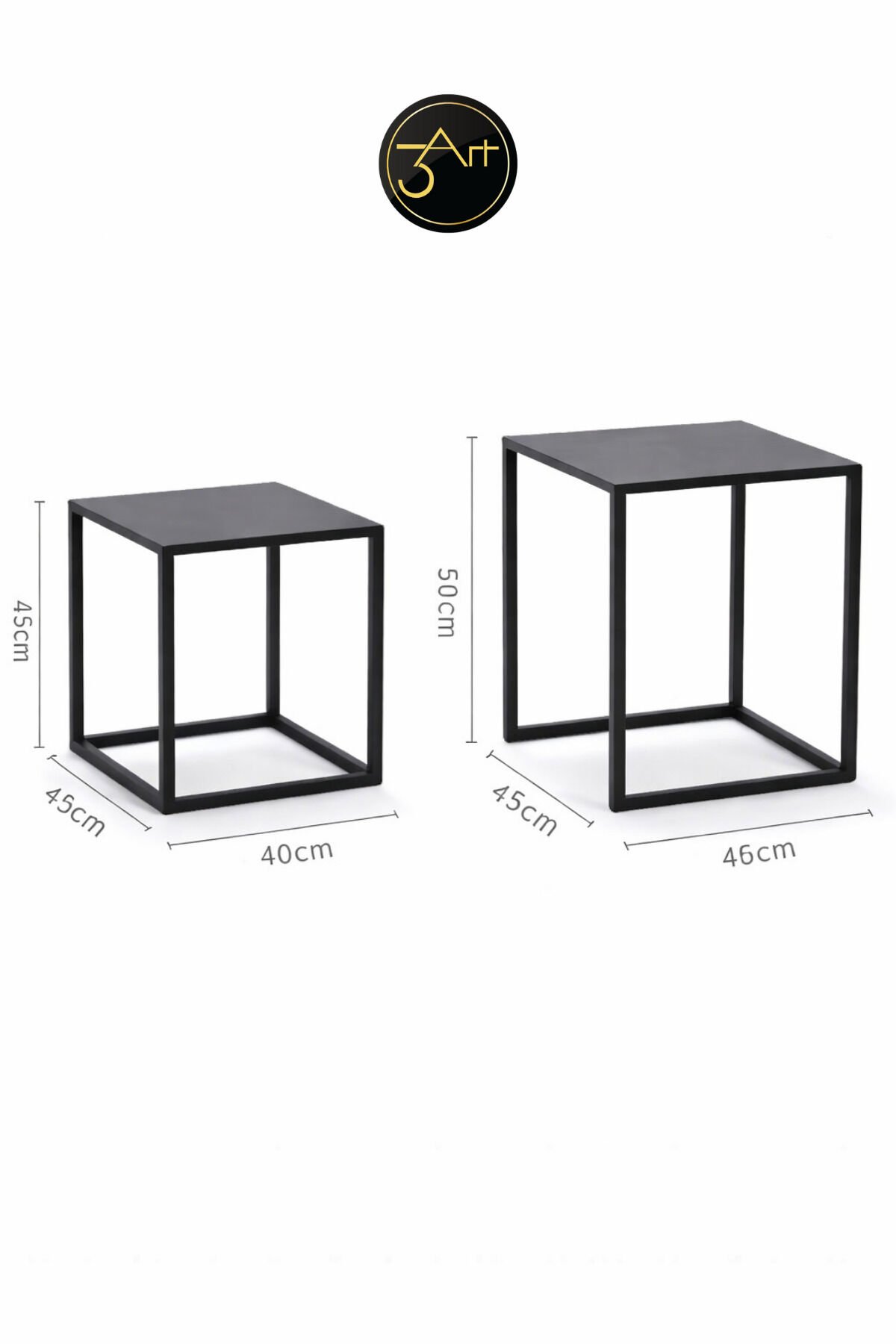 - Modern ve minimalist tasarımıyla her dekorasyona uyum sağlayan kare şekilli yan sehpa seti.; - Dayanıklı metal malzemeden üretilmiş olup, uzun ömürlü kullanım sunar.; - Şık siyah rengiyle mekanınıza modern bir dokunuş katar.; - Kolayca monte edilebilir ve 2 parçadan oluşan set, ihtiyaçlarınıza göre esnek kullanım imkanı sağlar.; -- Yerli üretim olup, 3art metal dekorasyon güvencesiyle üretilmiştir.; - 50 x 45 cm boyutlarındaki kompakt yapısıyla küçük alanlarda bile rahatlıkla kullanılabilir.;