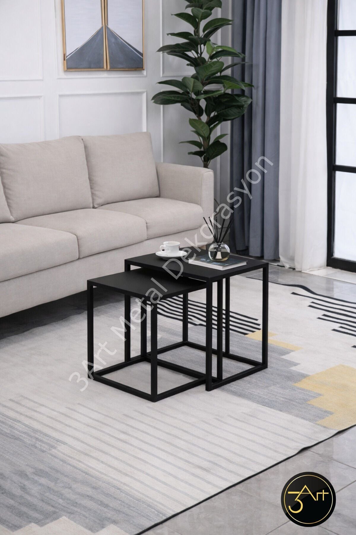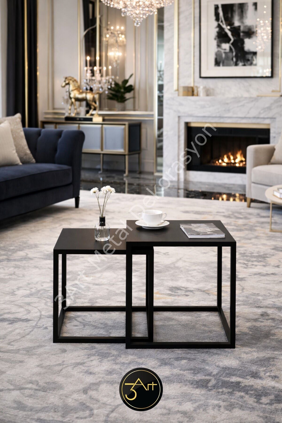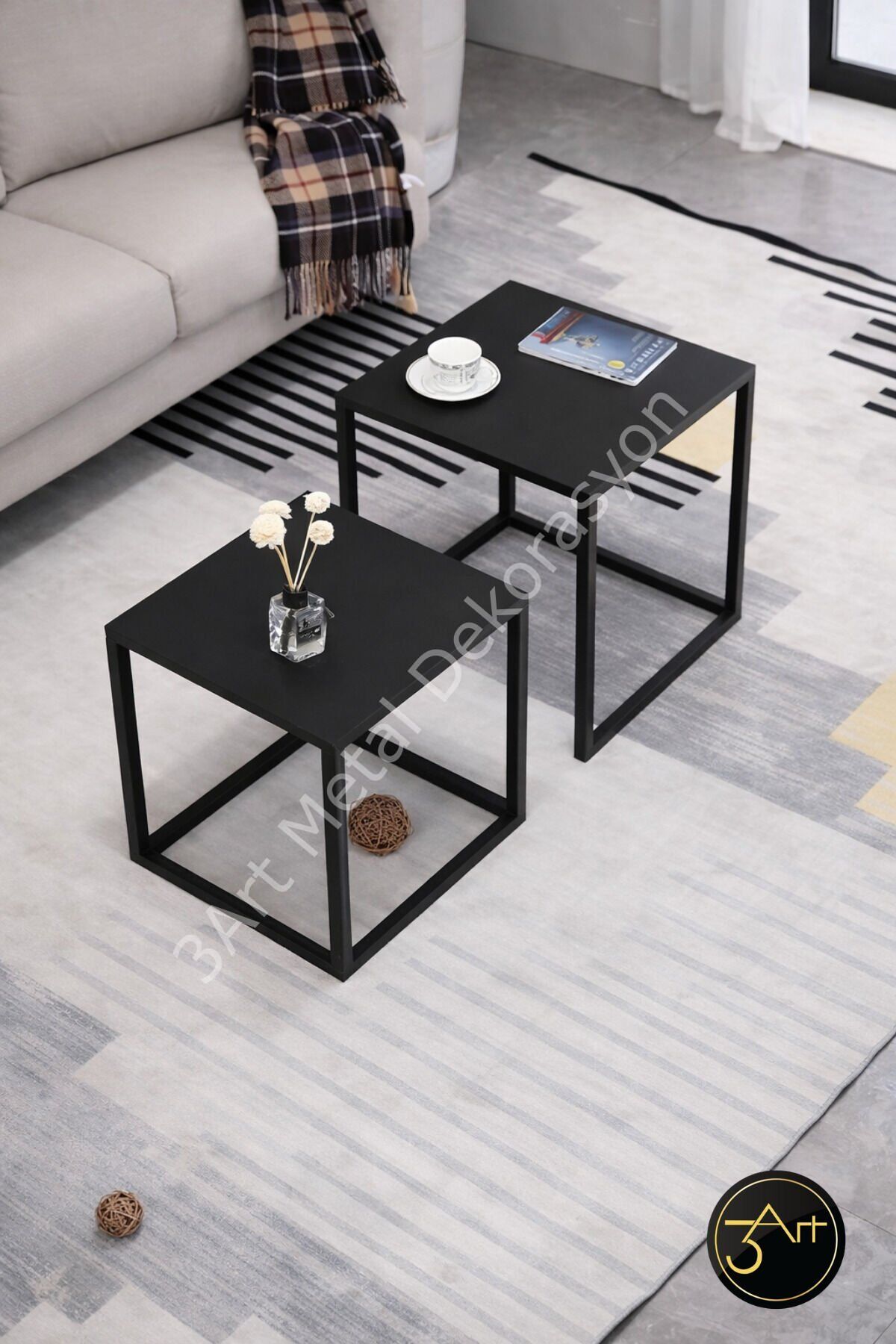 - Modern ve minimalist tasarımıyla her dekorasyona uyum sağlayan kare şekilli yan sehpa seti.; - Dayanıklı metal malzemeden üretilmiş olup, uzun ömürlü kullanım sunar.; - Şık siyah rengiyle mekanınıza modern bir dokunuş katar.; - Kolayca monte edilebilir ve 2 parçadan oluşan set, ihtiyaçlarınıza göre esnek kullanım imkanı sağlar.; -- Yerli üretim olup, 3art metal dekorasyon güvencesiyle üretilmiştir.; - 50 x 45 cm boyutlarındaki kompakt yapısıyla küçük alanlarda bile rahatlıkla kullanılabilir.;
