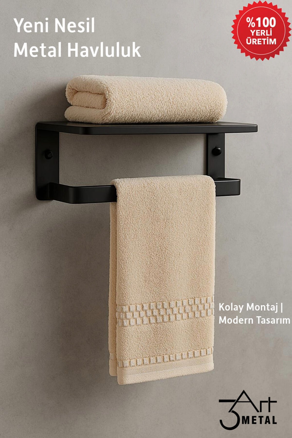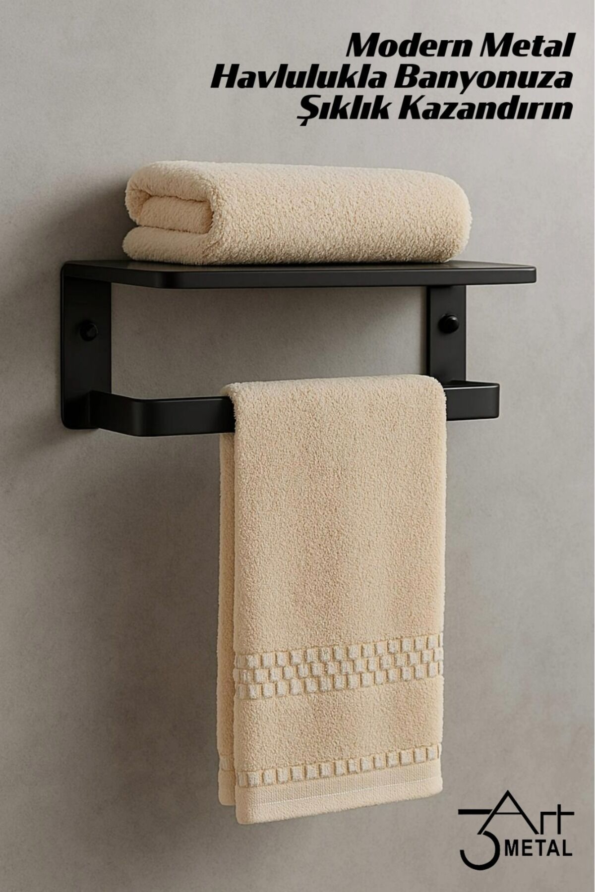 - Modern tasarımıyla banyonuza şıklık katan siyah metal duvar tipi havluluk, her banyoya uyum sağlayacak zarif bir görünüm sunar.; - Mat raflı yapısı sayesinde havlularınızı düzenli ve kolayca erişilebilir tutmanızı sağlar; pratik kullanım için idealdir.; - Nemli bir bez ile temizlenebilen yüzeyi, uzun süreli hijyen ve parlaklığını korurken bakımı da oldukça basittir.; - Siyah renk seçeneğiyle modern ve zamansız bir estetik sergileyen bu havluluk, mevcut banyo dekorasyonunuza kolayca uyum sağlar.; - Üreticinin 3art metal dekorasyon markası tarafından üretilmiş olup kaliteli malzemelerden yapılmıştır; dayanıklılık ve uzun ömürlü kullanım vaat eder.; - Havlu askılığı olarak tasarlanmış olan bu ürün, ekstra depolama alanı sunarak banyonuzda yer kazandırırken fonksiyonelliği arttırır.; - Havlu rafının dahil edildiği bu model, banyoda hem estetik hem de işlevsel bir çözüm sunarak günlük yaşamınıza konfor katmak üzere tasarlanmıştır.; - Havlu askısının havlu rafı özelliği ile hem pratiklik hem de fonksiyonellik bir arada sunulur; ekstra depolama alanı yaratır.; - Bakım talimatlarına uygun olarak nemli bir bezle silerek temizliğini kolayca koruyabilirsiniz; böylece hijyenik bir ortam sürdürmenize yardımcı olur.; - Siyah rengiyle modern ve zamansız bir görünüm sergileyen bu havluluk, her türlü banyo dekorasyonuyla uyum sağlar.; metal duvar askılığı, siyah askılık, banyo havlu askısı, çelik duvar askı, mutfak askılığı, kapı arkası askı, modern askılık, çanta askısı, lazer kesim askı, anahtarlık askılığı, dekoratif duvar askısı, mat siyah metal askılık, organizer askı