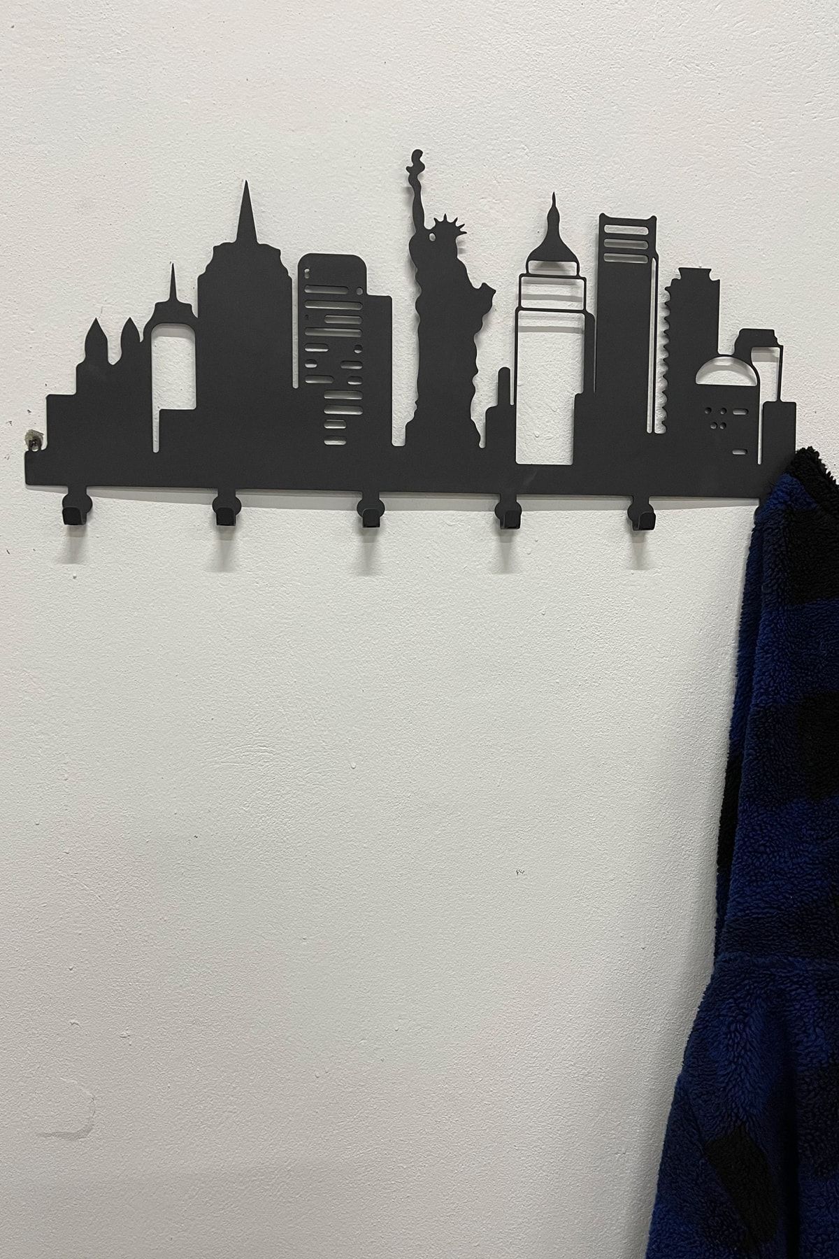 - Modern ve şık tasarımıyla dikkat çeken siyah renkteki Newyork Siluet Duvar Askısı, mekanınıza zarif bir dokunuş katıyor.; - Dayanıklı metal materyali sayesinde uzun ömürlü kullanım sunar ve sık kullanımlarda bile formunu korur.; - İskandinav stilinin sadeliğini yansıtan bu askı, minimalist dekorasyon anlayışına uygun bir seçimdir.; 55 cm genişliği ile geniş saklama alanı sağlar; kıyafetlerinizden aksesuarlarınıza kadar her şeyi düzenli bir şekilde sergilemenize olanak tanır.; - Klasik stilin zamansız çizgilerini evinizin her köşesine taşıyan bu portmanto, zamana meydan okuyan bir estetik sunar.; - 24 cm yüksekliğiyle ideal boyutta olan bu duvar askısı, kolayca monte edilebilir ve pratik kullanım imkanı verir.; - Duvara monte edilebilen yapısı sayesinde yer kaplamaz ve mekanınızda ekstra alan yaratmanızda yardımcı olur.; -Duvara monte edilebilir tasarımı ile yerden tasarruf sağlar ve mekanınızda şık bir görünüm oluşturur; Dayanıklı metal malzemesi sayesinde uzun ömürlü kullanım sunar ve günlük kullanıma uygundur; İskandinav stilinin sade ve modern çizgilerini yansıtan tasarımıyla evinizin dekorasyonuna zarif bir dokunuş katar; Klasik silueti, her türlü iç mekan tasarımıyla kolayca uyum sağlar ve zamansız bir estetik sunar;