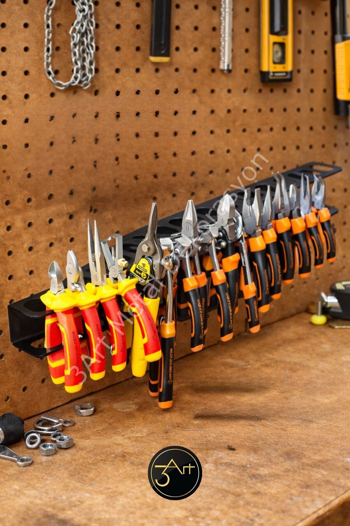 - Uzun tasarımı sayesinde çeşitli boyutlardaki pense ve el aletlerini rahatça asmanızı sağlar.; - Dolap içi düzenleyiciler kategorisinde yer alan bu ürün, atölye ve garajınızda alan tasarrufu yapmanıza yardımcı olur.; - Türkiye menşeli olmasıyla yerli üretim kalitesini ve güvenilirliğini temsil eder.;