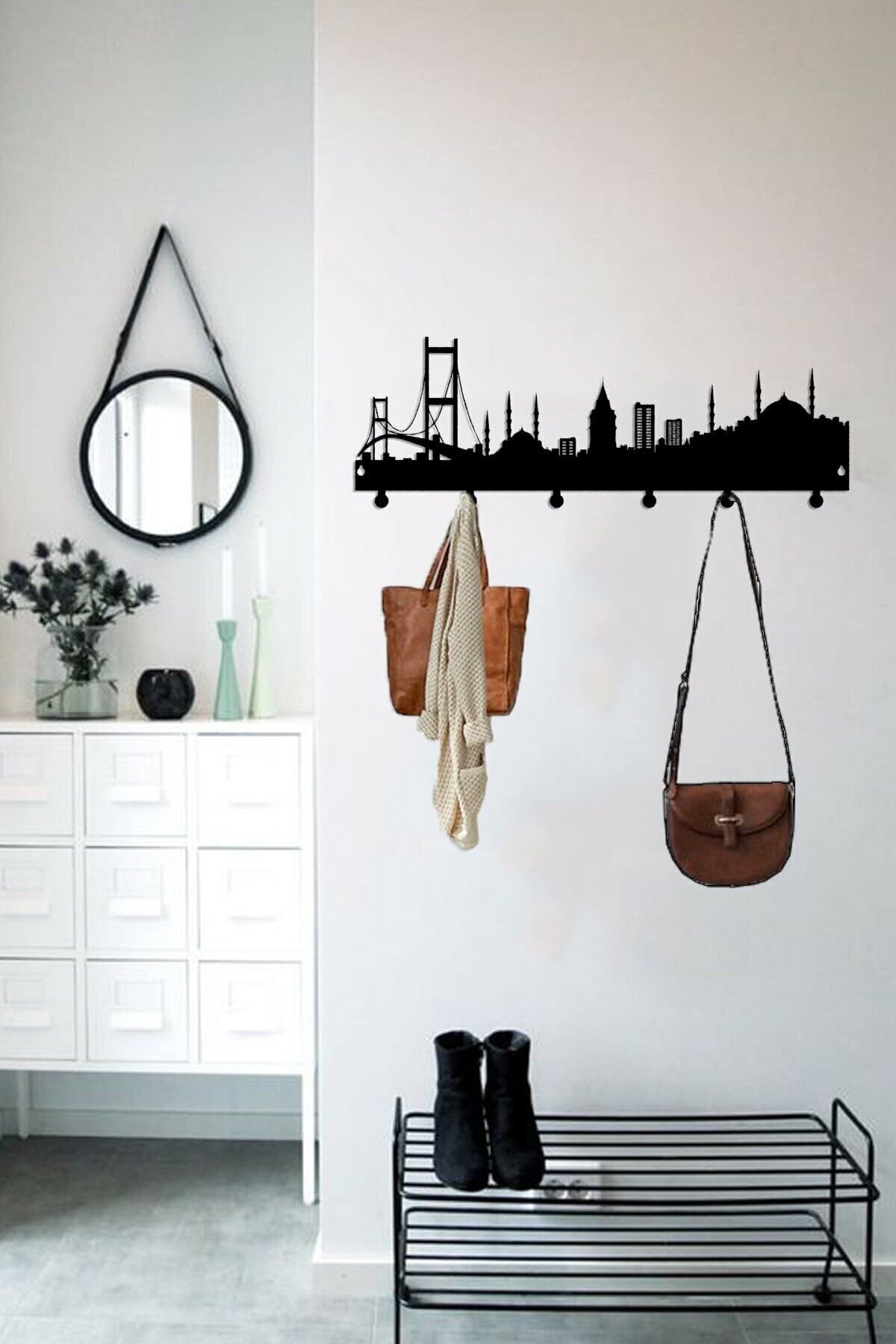 Evinizde şıklığı ve düzeni bir araya getiren 3ART METAL askılıklar ile tanışın! Tamamen mat siyah elektrostatik toz boyalı, lazer kesim teknolojisiyle üretilen bu askılıklar, hem işlevsel hem de dekoratif bir kullanım sunar.; Her bir ürün, yüksek kaliteli metal malzemeden üretilmiş olup, el işçiliği titizliğiyle montaj öncesi kontrol edilmiştir.; Modern ve minimalist tarzda tasarlanan bu metal duvar askılığı, özellikle ev girişlerinde, banyo ve yatak odalarında, çocuk odalarında ya da ofislerde hem kullanışlılık hem de estetik bir dokunuş sağlar.; Geniş kanca yapısıyla mont, çanta, havlu, bornoz, anahtar ve aksesuarlarınızı rahatlıkla taşıyabilir.; Aynı zamanda duvara kolayca monte edilebilen bu ürünler, güçlü yapısı sayesinde uzun ömürlü kullanım sağlar.; ⸻ ⭐ Neden 3ART METAL Askılık? • %100 yerli üretim • Dayanıklı ve uzun ömürlü metal yapı • Şık ve zamansız mat siyah kaplama • Lazer kesim estetiği • Her dekorasyona uyum sağlayan minimalist tasarım • Elde üretilmiş hissi veren detaylar • Kurulum için gerekli vida/dübel dahildir ⸻ metal askılık, duvar askısı, banyo askısı, mat siyah askılık, el yapımı dekoratif askılık, modern portmanto, giriş askılığı, anahtarlık, çocuk odası askısı, trendy askılık, metal ev dekorasyonu, 3art metal, lazer kesim dekoratif askıDayanıklı metal malzeme kullanımı, uzun ömürlü ve sağlam bir yapı sunar; Duvara monte edilebilir tasarımı sayesinde yerden tasarruf sağlar ve mekanınızda şık bir görünüm oluşturur; Modern stil sahibi tasarımıyla evinizin dekorasyonuna çağdaş bir dokunuş katar;