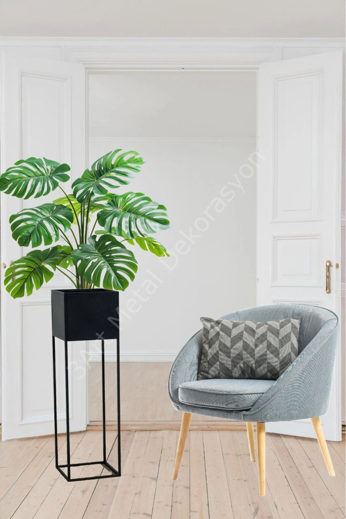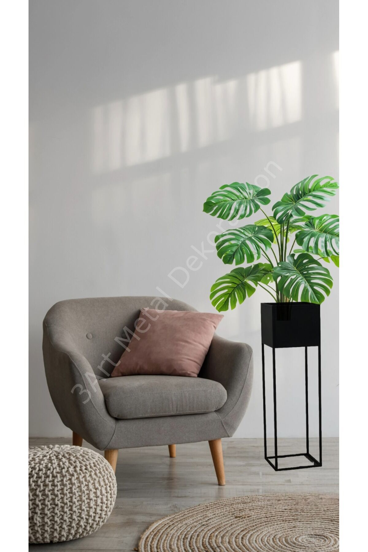 Modern Tasarımlı Siyah Metal Saksılık - Şık ve Dayanıklı Bitki Standı Ev dekorasyonuna zarafet ve modernlik katmak isteyenler için özel olarak tasarlanmış bu siyah metal saksılık, sade ama etkileyici çizgileriyle yaşam alanlarınıza estetik bir dokunuş sunar.; Dayanıklı metal gövdesi, minimal geometrik ayak yapısı ve mat siyah boyası sayesinde hem salon, balkon, ofis hem de giriş alanlarında göz alıcı bir dekoratif öğeye dönüşür.; ✔ %100 Yerli Üretim – 3Art Metal Dekorasyon kalitesiyle ✔ Modern, endüstriyel ve skandinav dekorasyonlarla mükemmel uyum ✔ Yüksek taşıma kapasitesi – Metal iskeleti sayesinde büyük saksılarla da kullanıma uygun ✔ Toz boya kaplama – Paslanmaya karşı uzun ömürlü koruma ✔ Kolay montaj – Kurulum gerektirmez, tek parça olarak gönderilir Bitkilerinizi yerden yükselterek daha fazla görünür kılan bu saksılık, aynı zamanda mobilyalarınızla bütünlük sağlayarak ortamın ferahlığını artırır.; Monstera, salon palmiyesi, yuka gibi büyük yapraklı bitkilerle kombinlenerek etkileyici bir görünüm yaratır.;