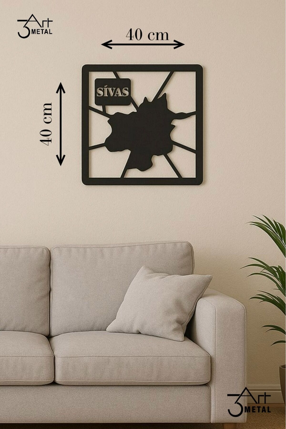 - Sivas şehrinin eşsiz siluetini yansıtan metal duvar dekoru, mekanınıza modern ve şık bir dokunuş katıyor.; - 40 cm boyutundaki bu tablo, her türlü duvar için ideal bir dekoratif unsur olarak öne çıkıyor.; - Siyah renk seçeneğiyle, mevcut mobilya ve dekorasyon stilinize kolayca uyum sağlıyor.; - Geleneksel tema ve stil ile tasarlanmış bu ürün, Sivas'ın kültürel mirasını evinizin her köşesine taşıyor.; - 3art metal dekorasyon tarafından üretilen bu ürün, kalite ve estetiği bir arada sunuyor.; - Geleneksel temayı modern bir dokunuşla birleştiren Sivas Haritası Metal Duvar Dekoru, evinizin veya ofisinizin dekorasyonuna şıklık katıyor.; - Yüksek kaliteli metal materyal kullanılarak üretilmiş olup, uzun ömürlü ve dayanıklı bir kullanım sunar.; - Türkiye menşeli olmasıyla yerel üretim desteklenmiş ve kaliteli işçilikle öne çıkmaktadır.; - Tek parça halinde gelen bu dekoratif ürün, kolay montaj avantajıyla zamandan tasarruf sağlar.;