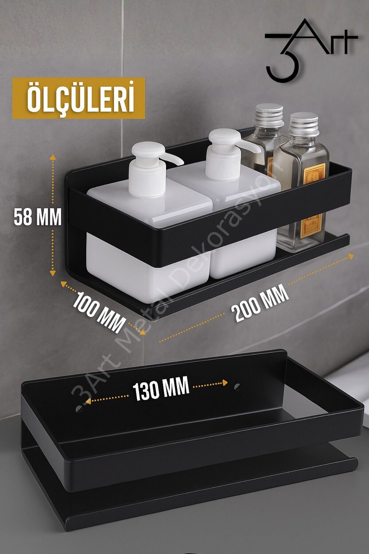 - Suya dayanıklı malzemeden üretilmiş, banyo ve mutfak gibi nemli ortamlarda kullanım için idealdir.; - Hem yapıştırmalı hem de vidalı montaj seçenekleri sayesinde farklı yüzeylere kolayca monte edilebilir.; - Şampuan ve diş fırçası gibi kişisel bakım ürünlerinizi düzenli bir şekilde saklamanızı sağlar.; - Siyah renk seçeneği ile modern ve şık bir görünüm sunar, banyonuzun dekorasyonuna kolayca uyum sağlar.; - 3art metal dekorasyon tarafından üretilmiş olup, kalite ve dayanıklılık garantisi sunar.; - Nemli bir bezle kolayca temizlenebilir, bakımı pratiktir.