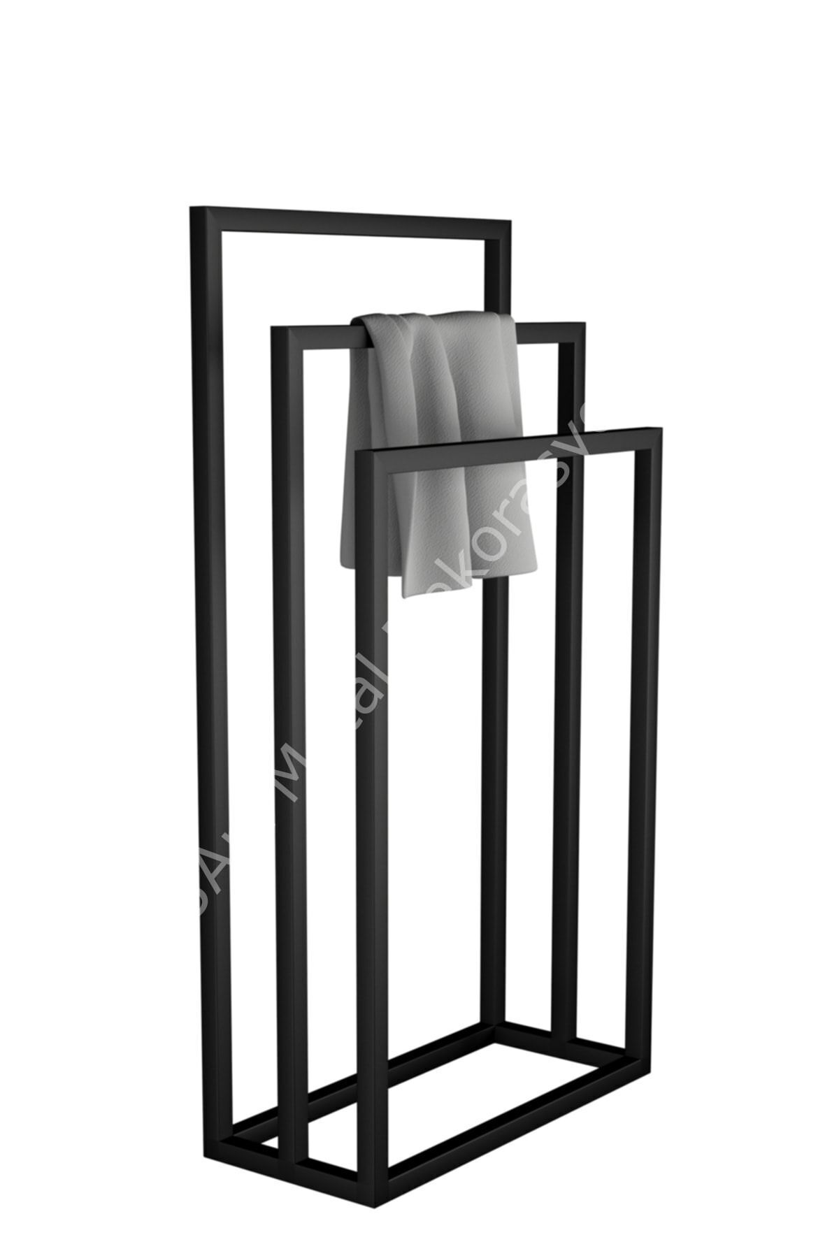 - Modern tasarımıyla evinizin dekorasyonuna şıklık katan ayaklı metal havluluk.; - Dayanıklı metal malzemesi sayesinde uzun ömürlü kullanım sunar.; - Siyah rengi ile her türlü iç mekan renk paletine kolayca uyum sağlar.; - Üçlü set halinde sunulan bu ürün, banyo veya mutfak gibi alanlarınızda fonksiyonel bir çözüm oluşturur.; - Ayaklı yapısı sayesinde yerden tasarruf etmenizi sağlayarak pratik bir kullanım imkanı tanır.; - Dayanıklı metal malzeme kullanımı, uzun ömürlü ve sağlam bir yapı sunar; Ayaklı tasarımı sayesinde yerden tasarruf sağlar ve banyonuzda şık bir görünüm oluşturur; Üçlü set halinde gelen bu havluluk, birden fazla eşyanızı düzenli bir şekilde saklamanız için idealdir;
