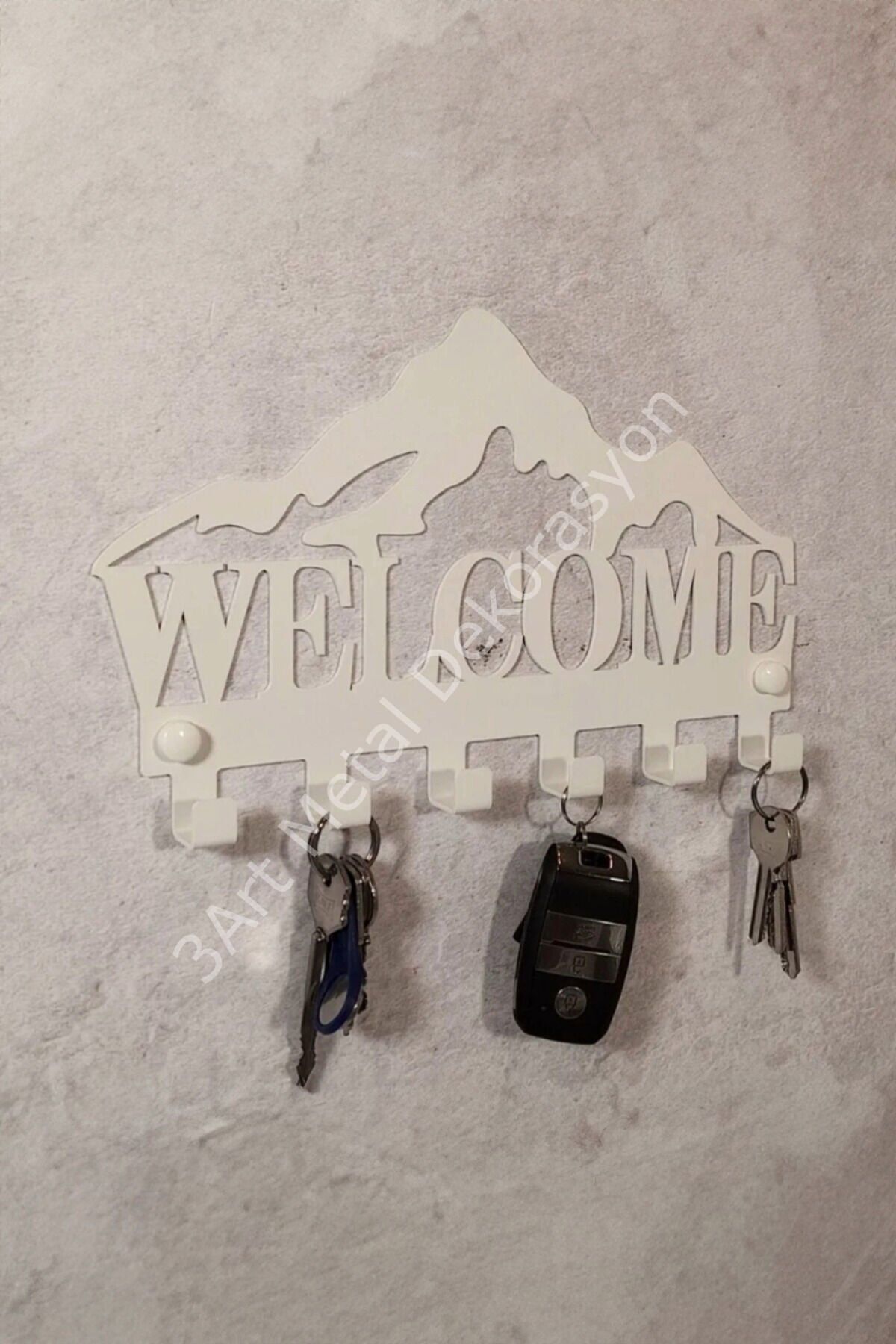 Evinizde şıklığı ve düzeni bir araya getiren 3ART METAL askılıklar ile tanışın! Tamamen mat siyah elektrostatik toz boyalı, lazer kesim teknolojisiyle üretilen bu askılıklar, hem işlevsel hem de dekoratif bir kullanım sunar.; Her bir ürün, yüksek kaliteli metal malzemeden üretilmiş olup, el işçiliği titizliğiyle montaj öncesi kontrol edilmiştir.; Modern ve minimalist tarzda tasarlanan bu metal duvar askılığı, özellikle ev girişlerinde, banyo ve yatak odalarında, çocuk odalarında ya da ofislerde hem kullanışlılık hem de estetik bir dokunuş sağlar.; Geniş kanca yapısıyla mont, çanta, havlu, bornoz, anahtar ve aksesuarlarınızı rahatlıkla taşıyabilir.; Aynı zamanda duvara kolayca monte edilebilen bu ürünler, güçlü yapısı sayesinde uzun ömürlü kullanım sağlar.; ⸻ ⭐ Neden 3ART METAL Askılık? • %100 yerli üretim • Dayanıklı ve uzun ömürlü metal yapı • Şık ve zamansız mat siyah kaplama • Lazer kesim estetiği • Her dekorasyona uyum sağlayan minimalist tasarım • Elde üretilmiş hissi veren detaylar • Kurulum için gerekli vida/dübel dahildir ⸻ metal askılık, duvar askısı, banyo askısı, mat siyah askılık, el yapımı dekoratif askılık, modern portmanto, giriş askılığı, anahtarlık, çocuk odası askısı, trendy askılık, metal ev dekorasyonu, 3art metal, lazer kesim dekoratif askı - Modern tasarımıyla evinizin dekorasyonuna şıklık katan beyaz anahtar askısı, minimalist estetiğiyle dikkat çeker.; - Dayanıklı metal malzemesi sayesinde uzun ömürlü kullanım sunar ve sık kullanıma karşı dirençlidir.; - 28 cm genişliği ve 14 cm yüksekliği ile ideal boyutlarda olan bu anahtarlık, hem fonksiyonel hem de estetik bir çözüm sağlar.; - Duvara monte edilebilme özelliği ile pratik bir kullanım imkanı sunarken, alan tasarrufu da sağlar.; - Tek ebat seçeneğiyle her türlü kapı veya dolap kapısına kolayca uyum sağlayarak evinizdeki düzeni korumanızda yardımcı olur.