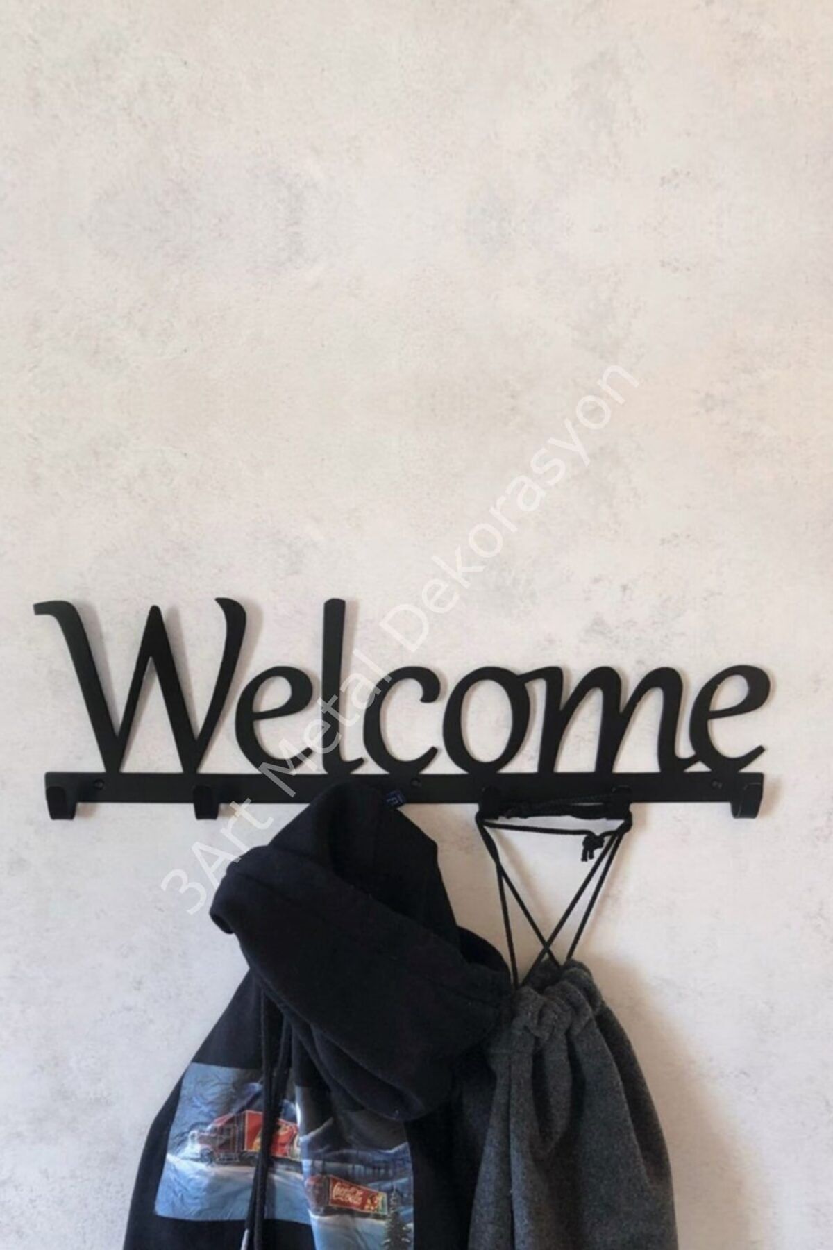 - Modern tasarımıyla evinizin dekorasyonuna şıklık katan metal duvar askısı.; - 16 cm yüksekliği ve 50 cm genişliğiyle, geniş kullanım alanı sunar.; - Dayanıklı metal materyali sayesinde uzun ömürlü kullanım vaat eder.; - Gri renk seçeneği ile mevcut mobilya ve aksesuarlarınızla kolayca uyum sağlar.; - Modern stil sahibi olan bu askı, evinizdeki minimalist dokunuşları tamamlar.; -Duvara monte edilebilir tasarımı ile yerden tasarruf sağlar ve mekanınıza modern bir dokunuş katar; Dayanıklı metal malzemesi sayesinde uzun ömürlü kullanım sunar ve sık kullanıma uygundur; "Welcome" yazılı dekoratif metal duvar askısı, evinizin veya ofisinizin girişine hoş bir karşılama mesajı verir; -