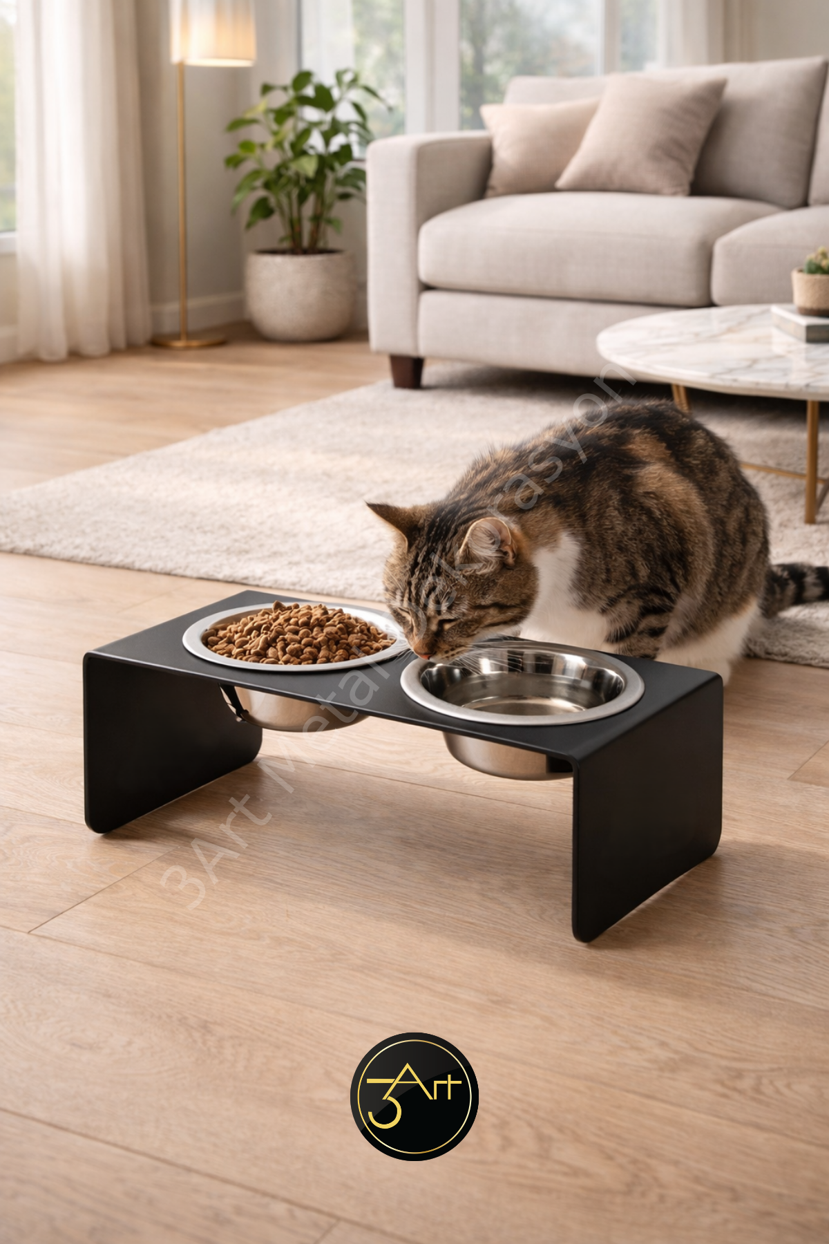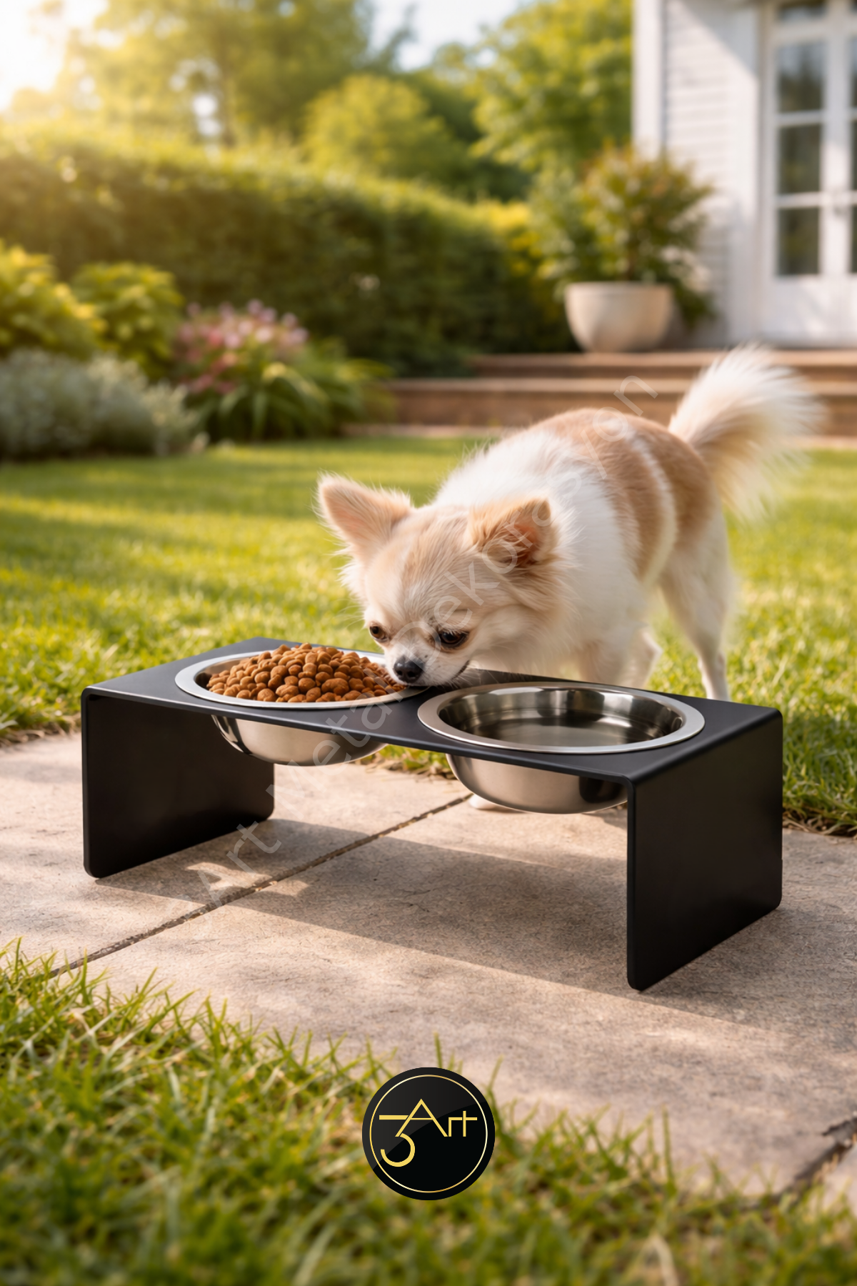 Yükseltilmiş Köpek Mama Kabı Standı, çift hazneli çelik tasarımıyla mama ve suyu hijyenik ve düzenli tutar. Ergonomik yüksekliği sayesinde evcil dostunuzun beslenme konforunu artırır. Dayanıklı malzeme uzun ömür sağlar, kolay temizlenir ve şık görünümü evinize uyum sağlar.
