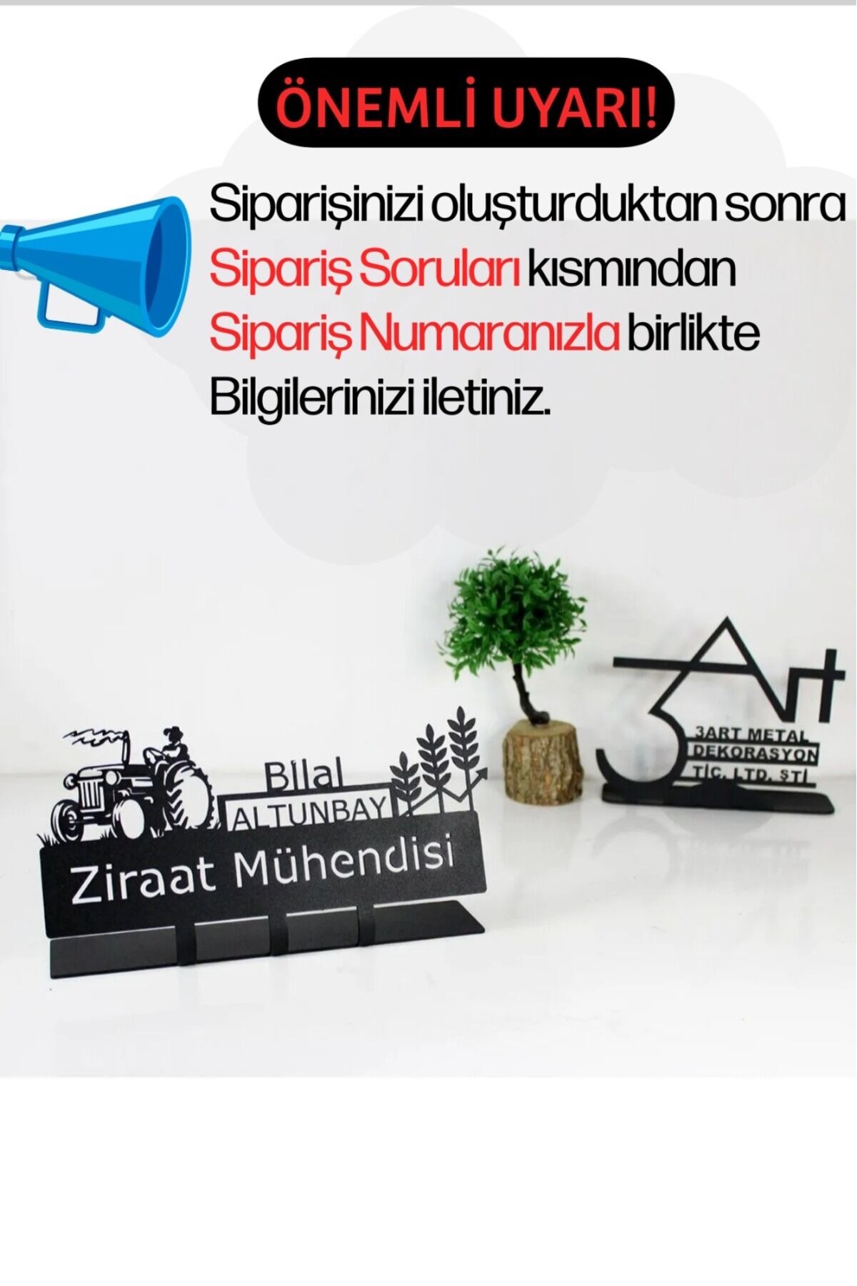- Şık ve profesyonel görünümüyle dikkat çeken siyah renkli masaüstü isimlik, ofis veya çalışma alanınıza modern bir dokunuş katıyor.; - Kişisel kullanım için ideal olan bu metal isimlik, Ziraat Mühendisi unvanınızı gururla sergilemenize olanak tanır.; - 20 x 20 cm boyutlarındaki kompakt tasarımı sayesinde masanızda fazla yer kaplamadan kullanabilirsiniz.; - Dayanıklı malzemesi ile uzun süreli kullanım vaat eden bu kişiye özel isimlik, kaliteyi ve estetiği bir arada sunar.